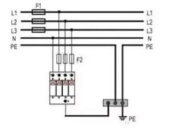 ⑩ 避雷器,用于配電箱避雷,接線如圖(本圖熔斷器的位置是下面那組,上面那組忽略吧,就當他們是斷路器):